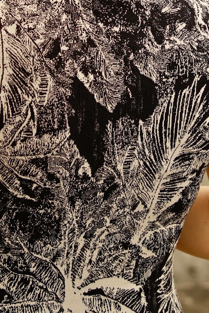 ポルトガルの首都リスボンから南西約1,000km、大西洋上に浮かぶマデイラ島。島は、温暖で、深い緑に覆われた、色とりどりの花々と深く濃い青い海。そんなイメージが浮かんでくるモノクロのボタニカル柄。