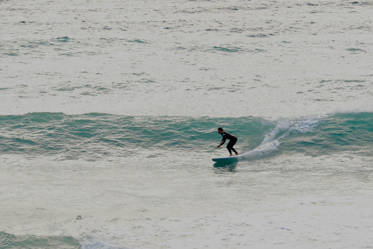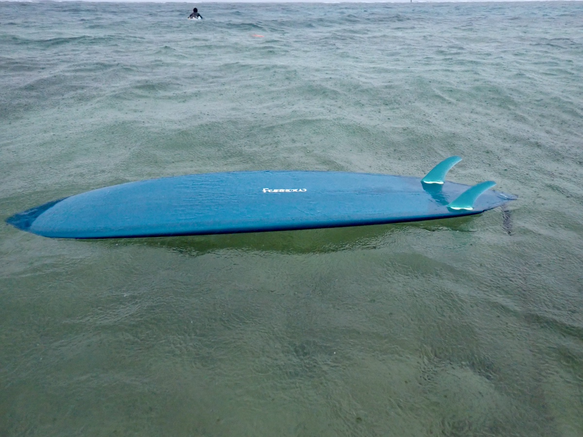 テイクオフ時やターン時に波に引っかかる事のない、ちょうど良いノーズ幅とボリューム。