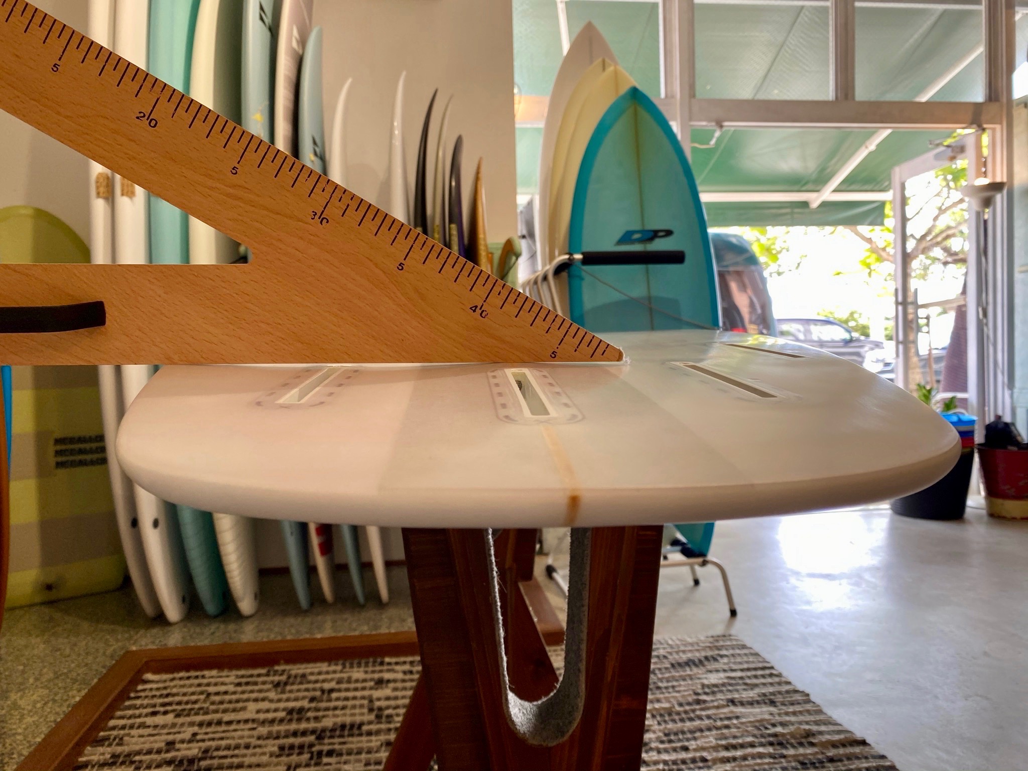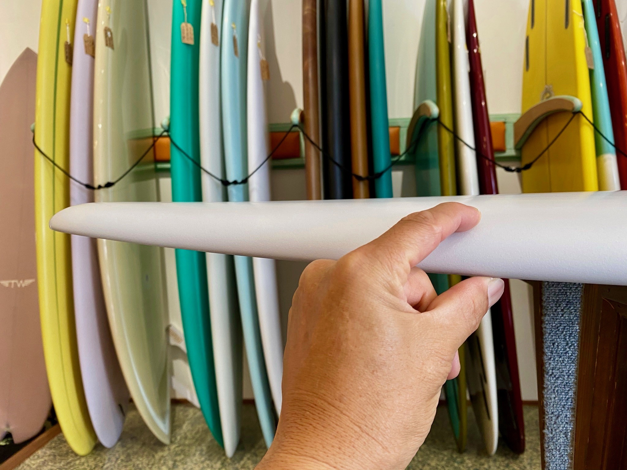 幅を広めに取ったアウトラインとテイルの幅が、小波でのテイクオフ性能を引き上げてくれます。