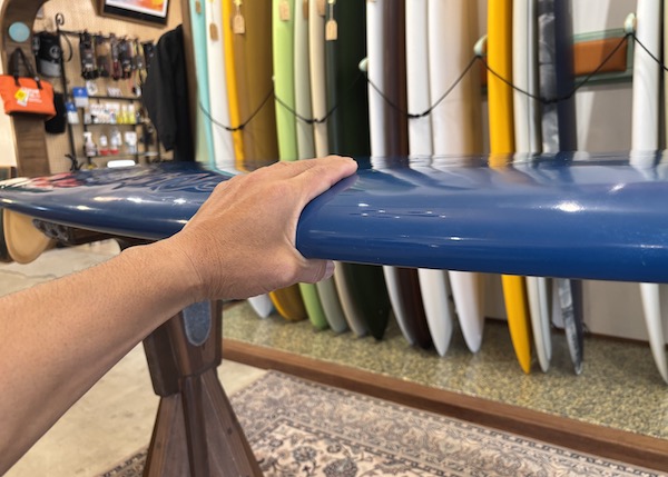パドル、テイクオフは、非常に楽で、広いテイルは波のパワーを十二分に受け、加速してからの横へのスピードは非常に速く、スピードに乗ったライディング、コントロール性能に優れたモデルです。