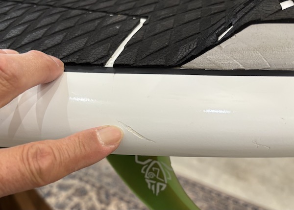 レイルには、大切なボードをパドルのブレードとの接触から守るレイルガードテープ「Rail Saver Proクリア」が貼られているので安心してお使い頂けます。