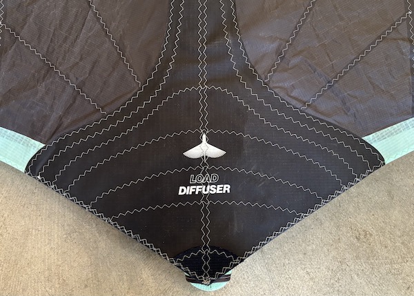 トレーリング エッジは、6垂直パネルによって制御され、張力を分散するために、翼端とストラットの背面には小さな放射状にパネルを配置しています。