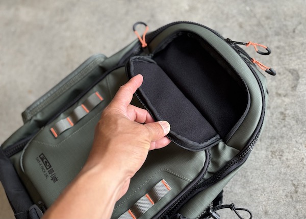 スマートフォン、サングラス、財布などを素早く取り出せるコンパートメント