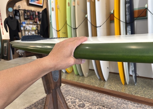 レールはダウンレールでレールが入りやすく、テールコントロールも容易で、テールがリフトする感じで軽い動きが可能です。