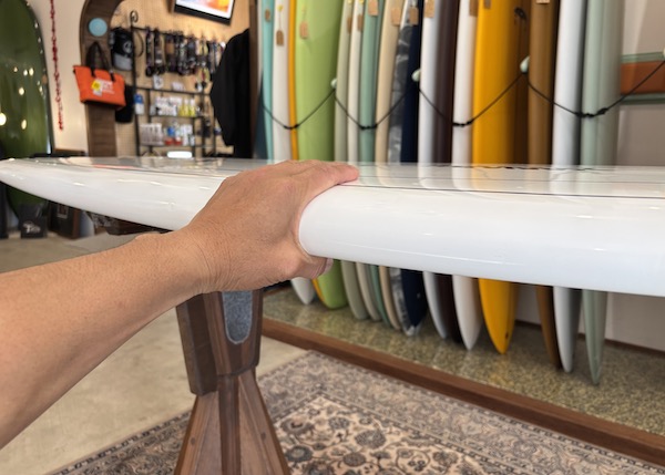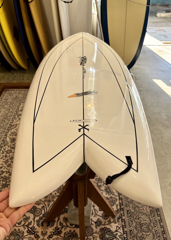 ノーマルショートボードよりもボリュームがあり、ロッカーが少ないため、パワーレスの波や急激に掘れないサイズのある波などで、速いテイクオフからのツインフィンの持つ滑らかなターンはポケットでの加速を味わえると共に、スピードとグライド感を楽しめます。