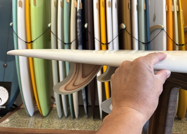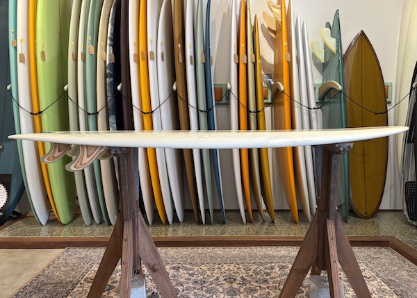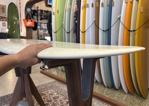 一般的なミニシモンズに比べノーズ幅を抑える事で、スナップの利いたターンと掘れた波への適応性を高め、深くスプリットされたテールがフェイスをしっかりととらえ、高いコントロール性を確保しています。