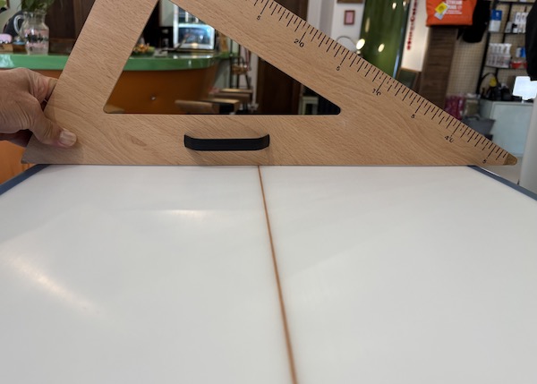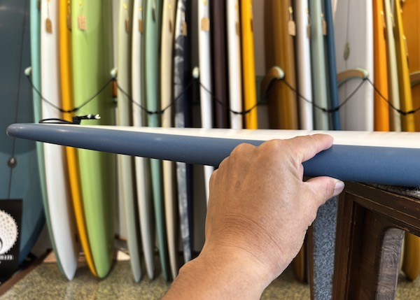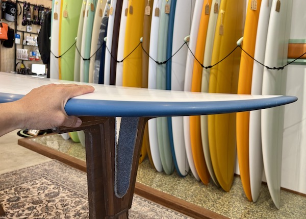 ワイドなノーズやテイルが、長さに対する浮力感を上げ、ロッカーを最小限に抑えること、