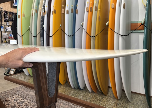 ボードの中心付近でのトリムサーフィンを楽しみながら、テール寄りにステップバックした際のターン性能とレールのホールド&リリースは軽快で軽く、短いボード同様に瞬時にコントロールが可能なモデルです。