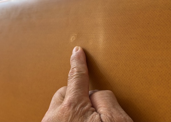ノーズよりの凹み、ストリンガー沿いにクラックがありますが、リペアの必要はなさそうです。