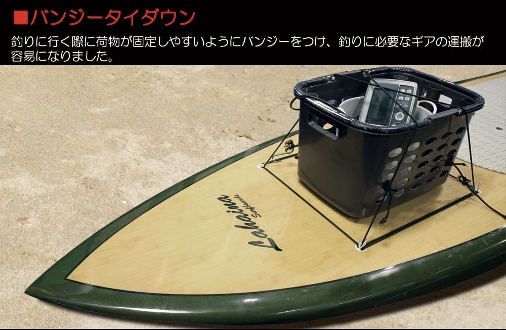 フロントデッキ側にはバンジーコードが付いており、荷物を載せてクルージングを楽しむことができます。