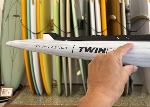 TWIN FINは、パワーレスな小波からパワフルなサイズのある波で、縦へのアプローチも容易にでき、コントロール性、スピード性に優れたモデルです。