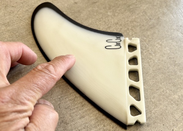 それはツインフィンで好まれるスピードとスケーティー感を維持しながらピボットターンも容易にするために立ったアウトラインになっています。