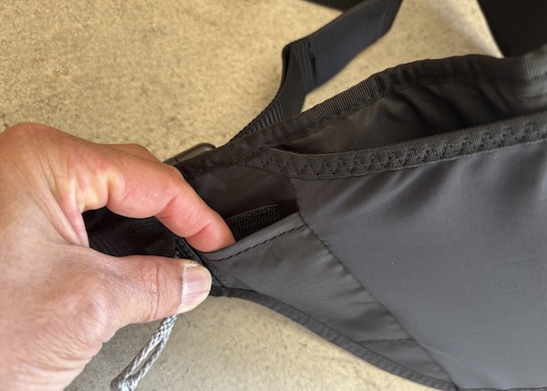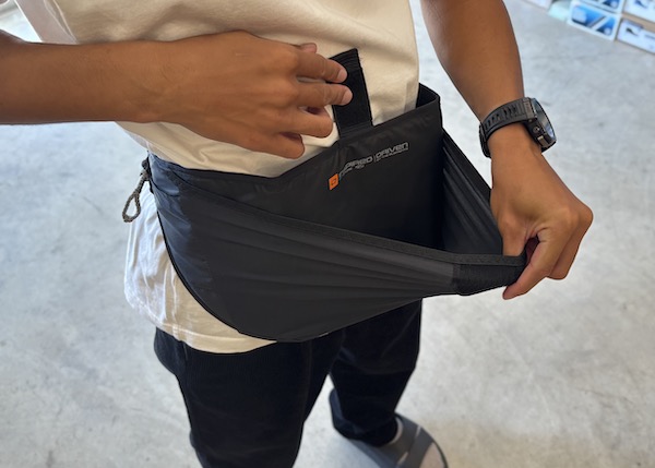 パラウイングを手軽に出し入れ出来るポケットを備えたウエストベルトです。