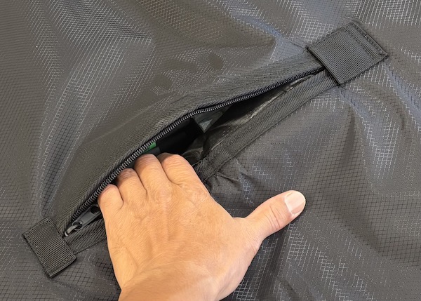 SUP本体のハンドル部分に開閉できるジッパーを付いているため、ケースに入れた状態でSUPハンドルが使えます。