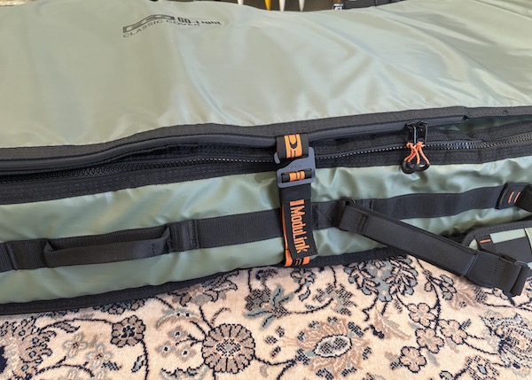 2枚のカバーを1つに繋げることで、運搬も楽に。さらに、ルーフラックに積んだボードを固定して積み重ねるのに最適で、長距離移動時の安全性を高めます。