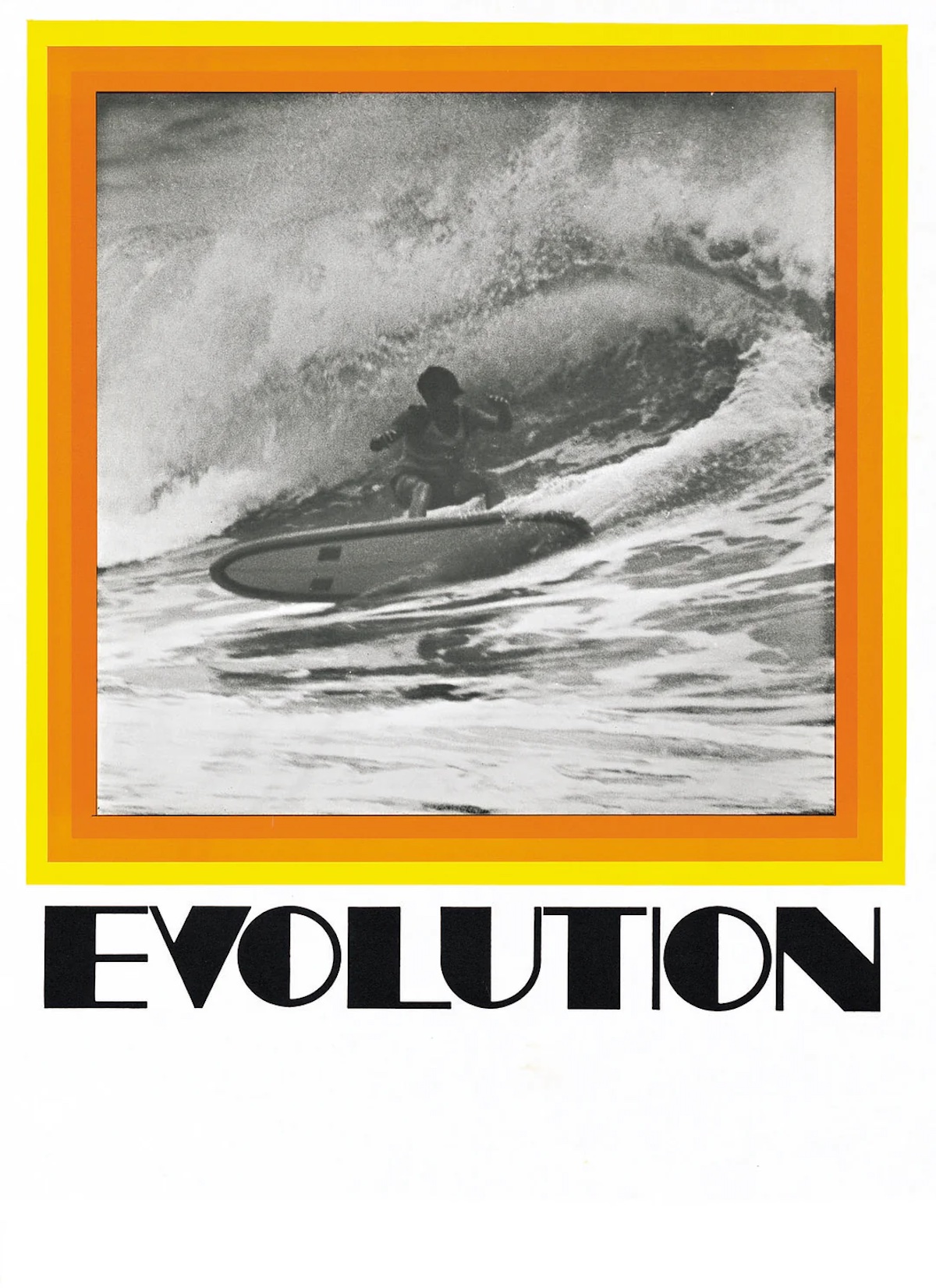 ”EVOLUTION"は、1960年代後期のショートボードレボリューション時代のサーフボードやサーフィンの過渡期に作られた作品。