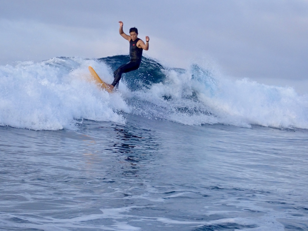 ボードのトップでの返しが大変軽く、波のフェイスやポケットの中でのテールコントロールがイージー。
