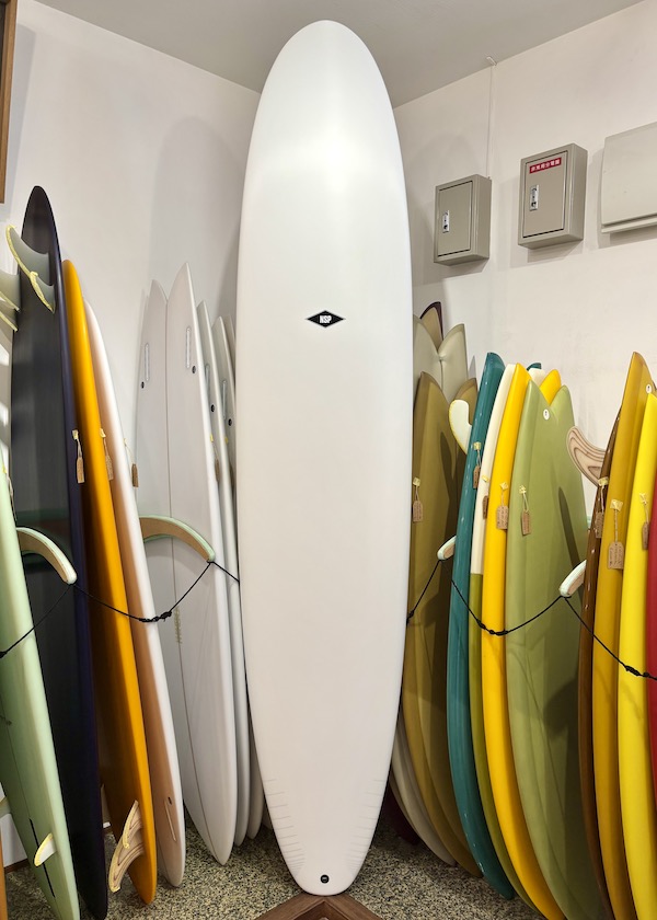 テール寄りのワイドポイントが特徴の「ダブルエンダー」シングルフィン。