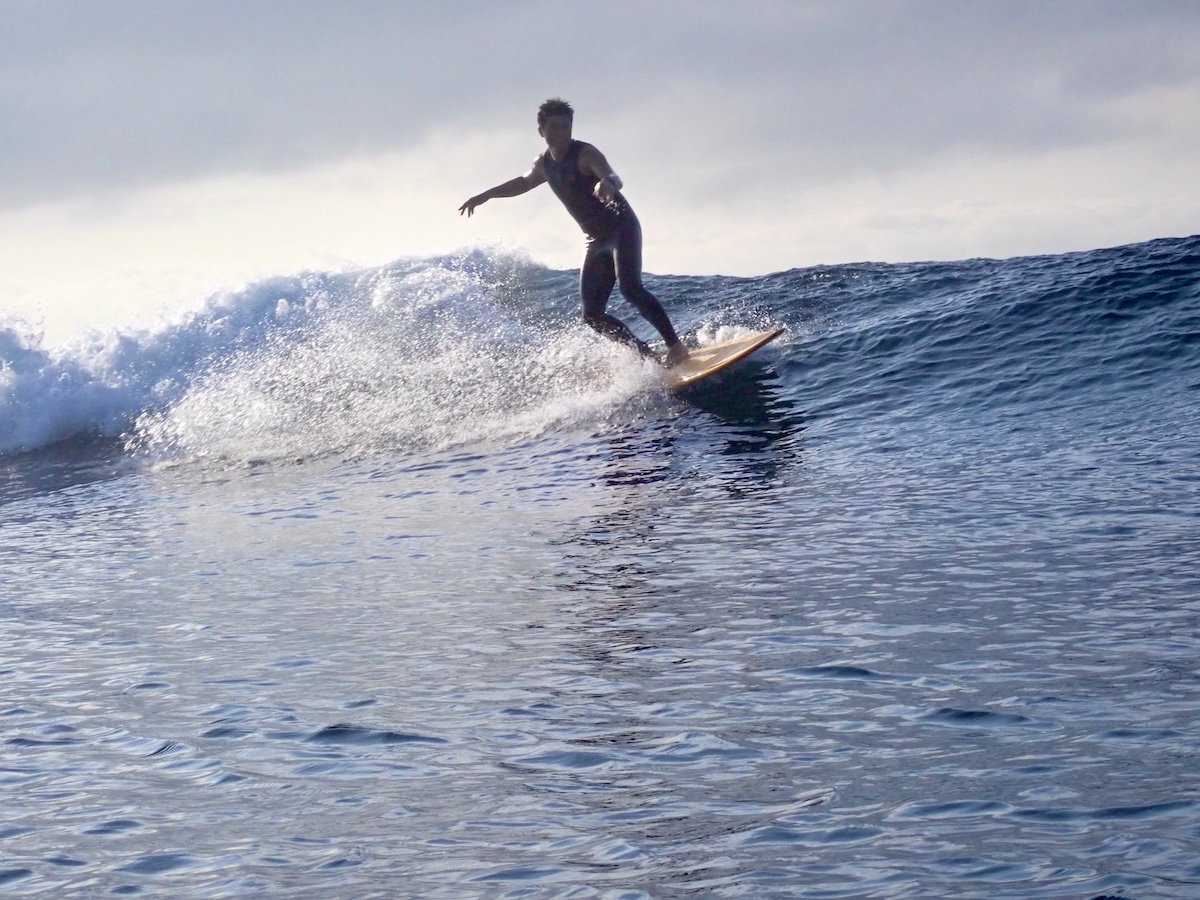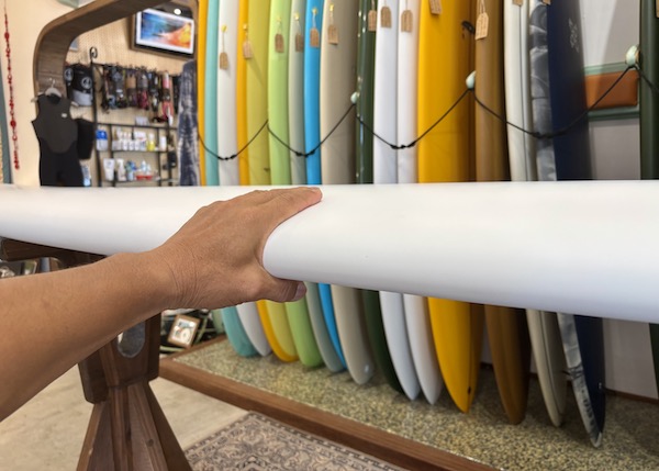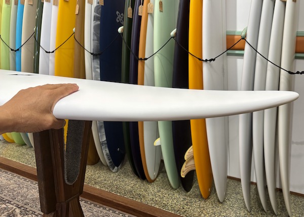 テイクオフ時やターン時に波に引っかかる事のない、ちょうど良いノーズ幅とボリューム。