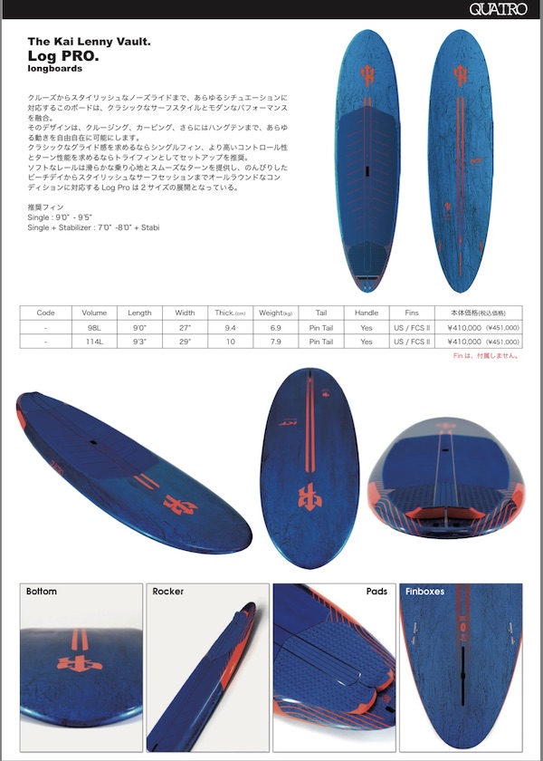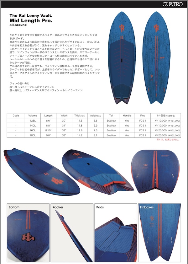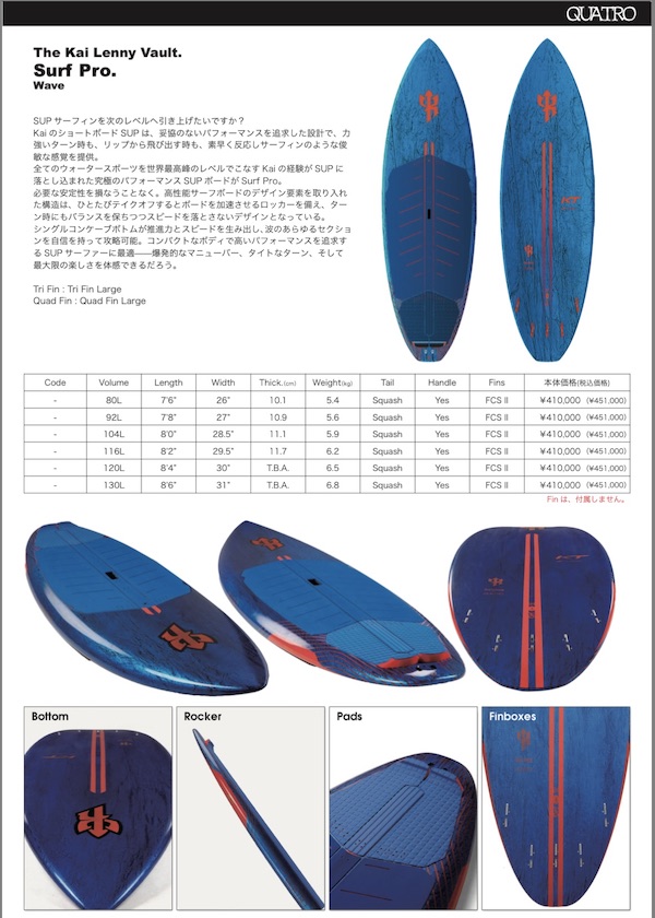 脅威とも言えるライディングで世界中のウォーターマンの憧れ「カイレニー」デザインのSUP「QUATRO SUP VAULT」の取り扱いをスタートします。
